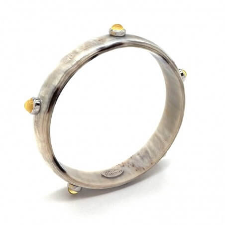 Bangle in clear horn 15mm set in silver - 5 stones 6mm