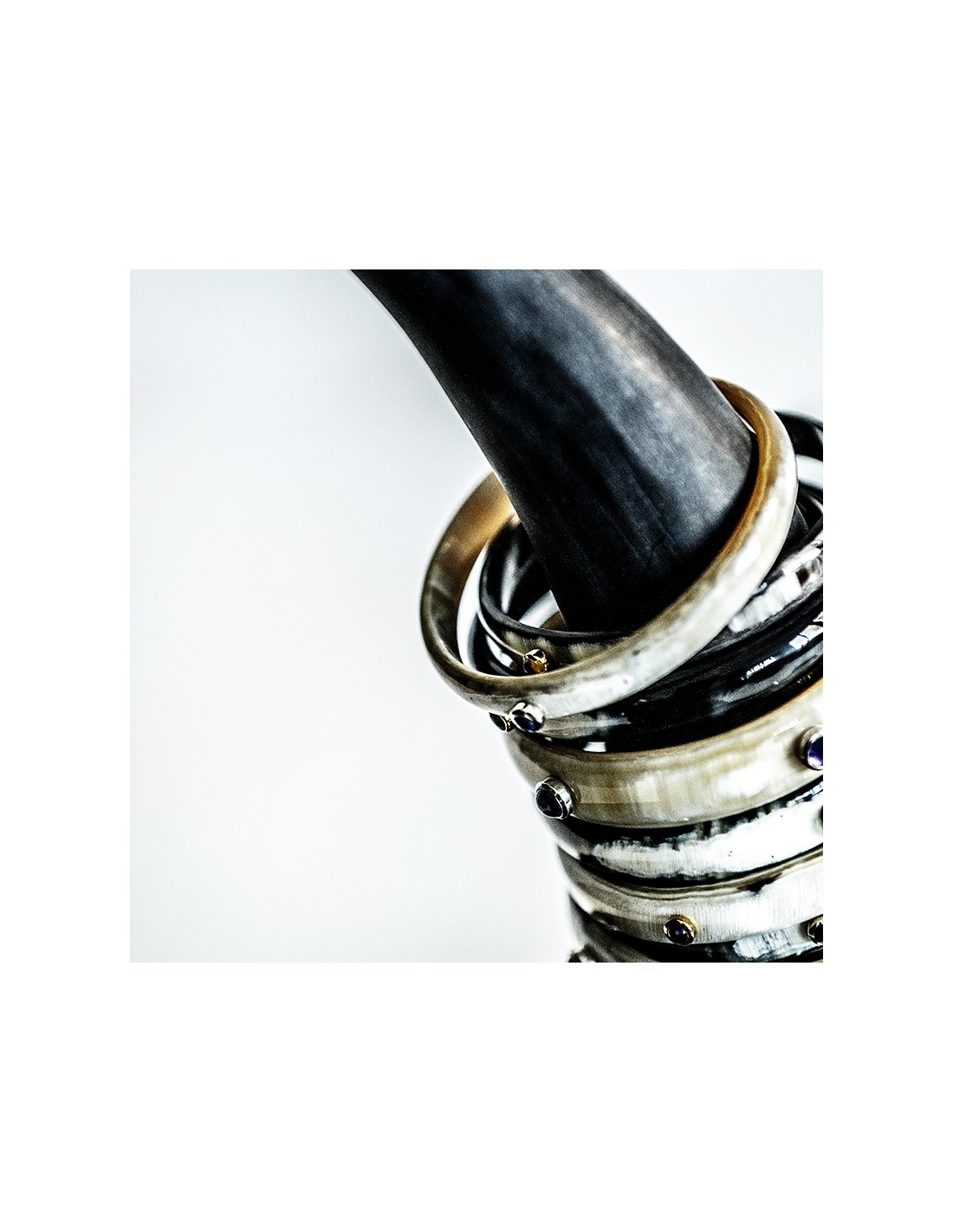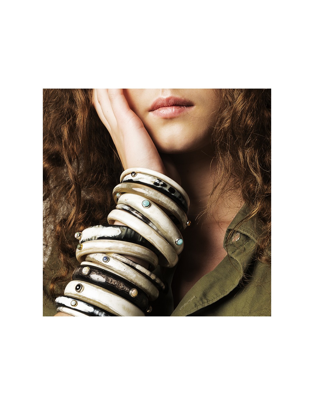 15mm dark horn band set in gold plated - 5 stones 6 mm