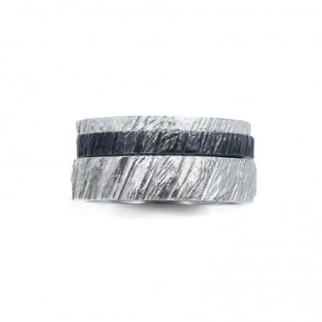 Cet stacker est fabriqué en petite série au sein de notre atelier lillois en argent massif poli ou vieilli. Chaque stacker Tungst-N-L est un ensemble de bagues uniques car elles sont fabriquées à la main. Possibilité d’ajouter des pierres précieuses tels que des diamants noirs ou blancs ainsi que vos pierres de famille.