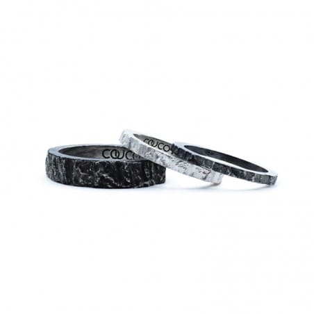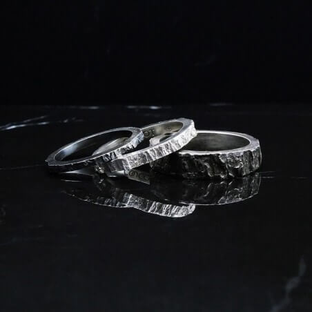 Cet stacker est fabriqué en petite série au sein de notre atelier lillois en argent massif poli ou vieilli. Chaque stacker Tungst-N-L est un ensemble de bagues uniques car elles sont fabriquées à la main. Possibilité d’ajouter des pierres précieuses tels que des diamants noirs ou blancs ainsi que vos pierres de famille.
