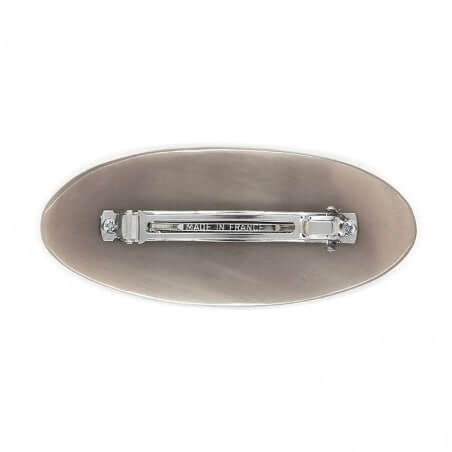 Cette barrette en corne de forme ovale mêle simplicité et élégance.