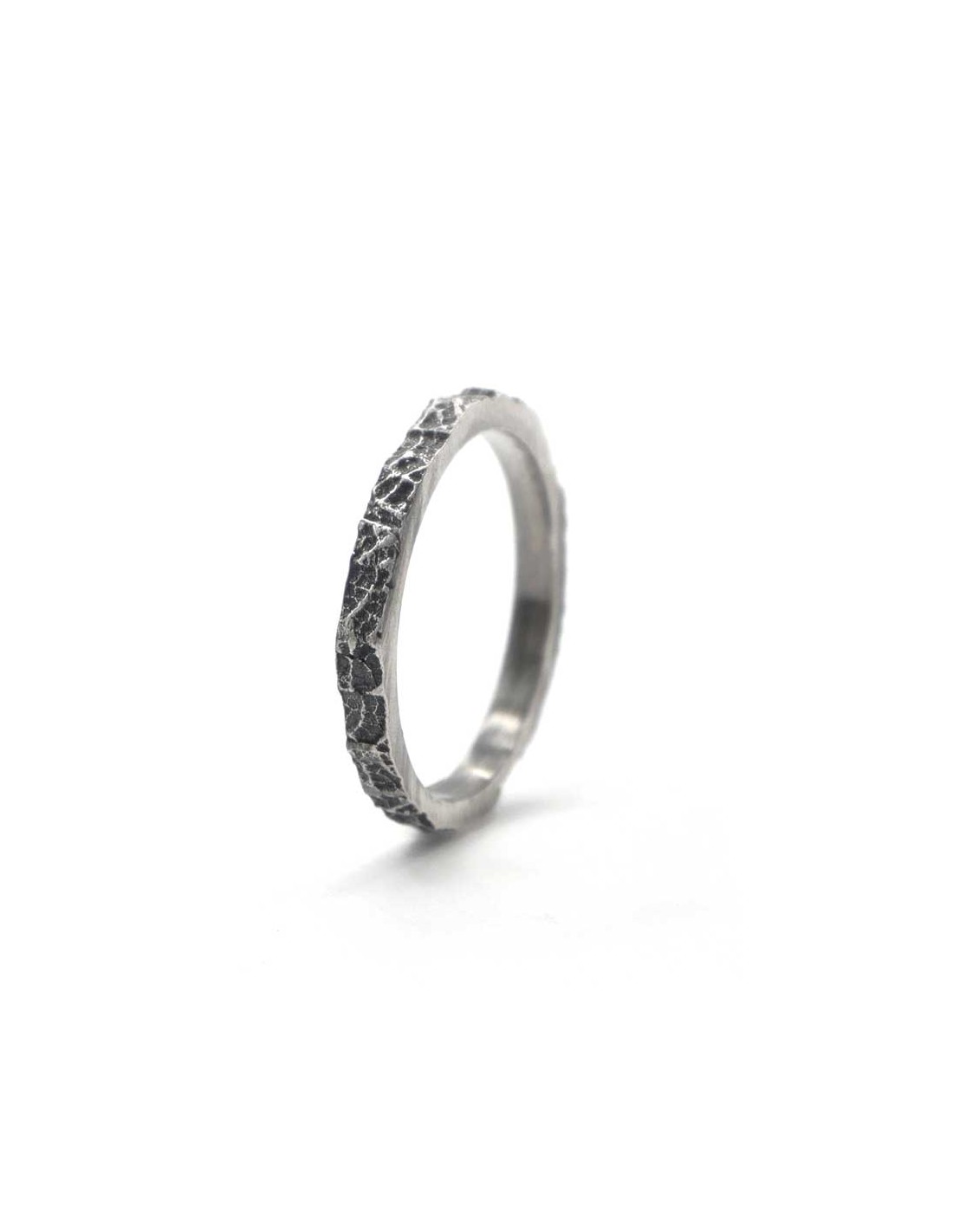 L'alliance originale modèle raphia présente des empreintes de feuille sculptées, créant une texture tactile et végétale. Elle marie matière brute et argent vieilli pour un rendu à la fois contemporain et authentique. Fabriquée à la main, cette création incarne un engagement sincère et singulier.