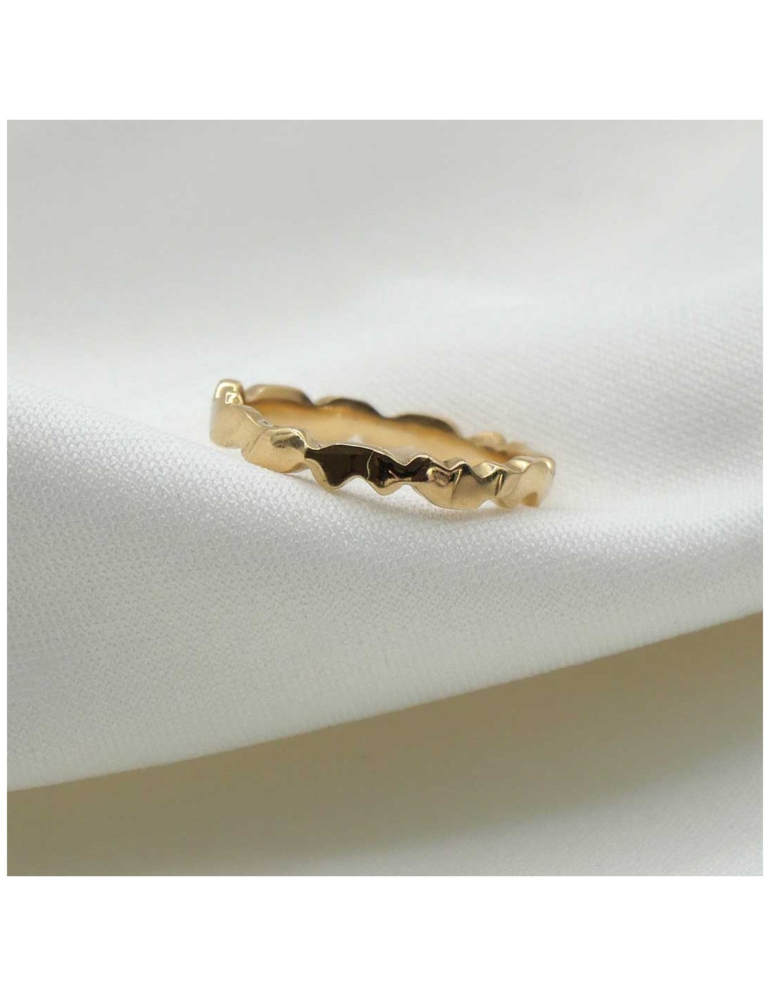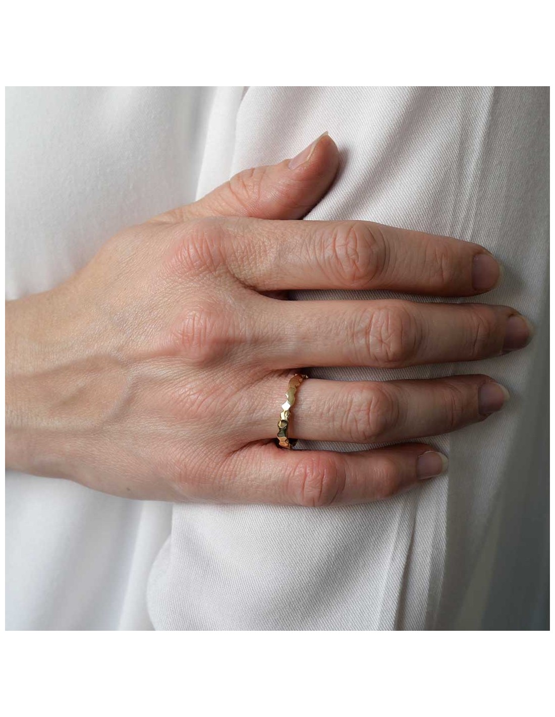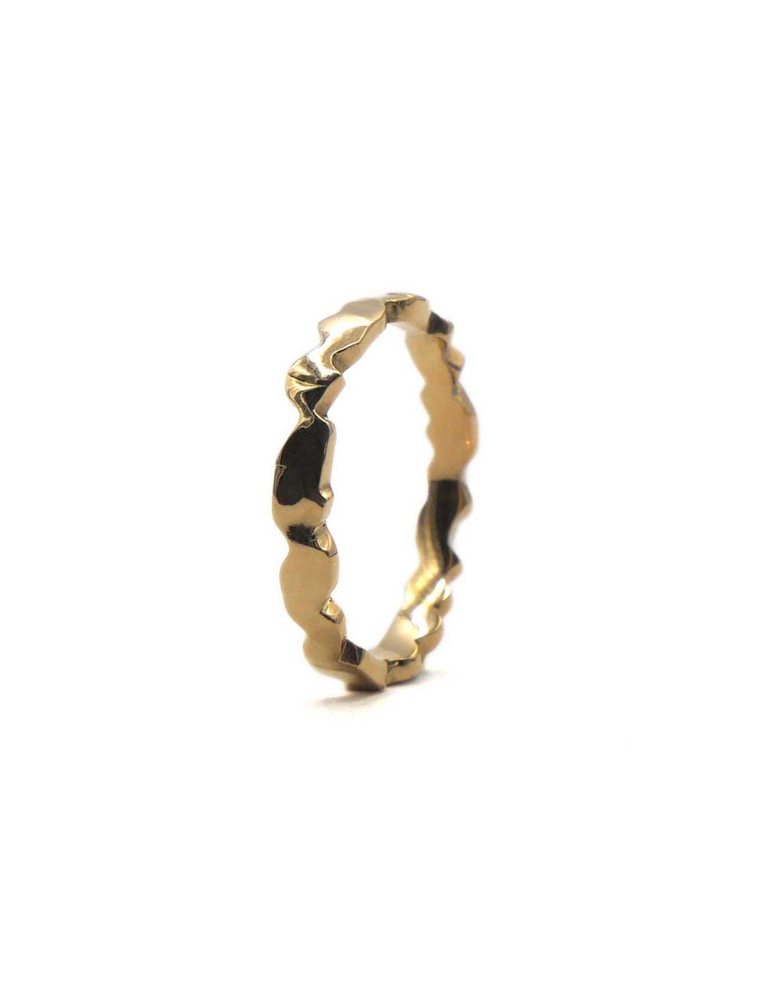 Façonnée à la main en or 18k ou argent 925, cette bague fine de 2,5 mm marie élégance contemporaine et caractère brut.