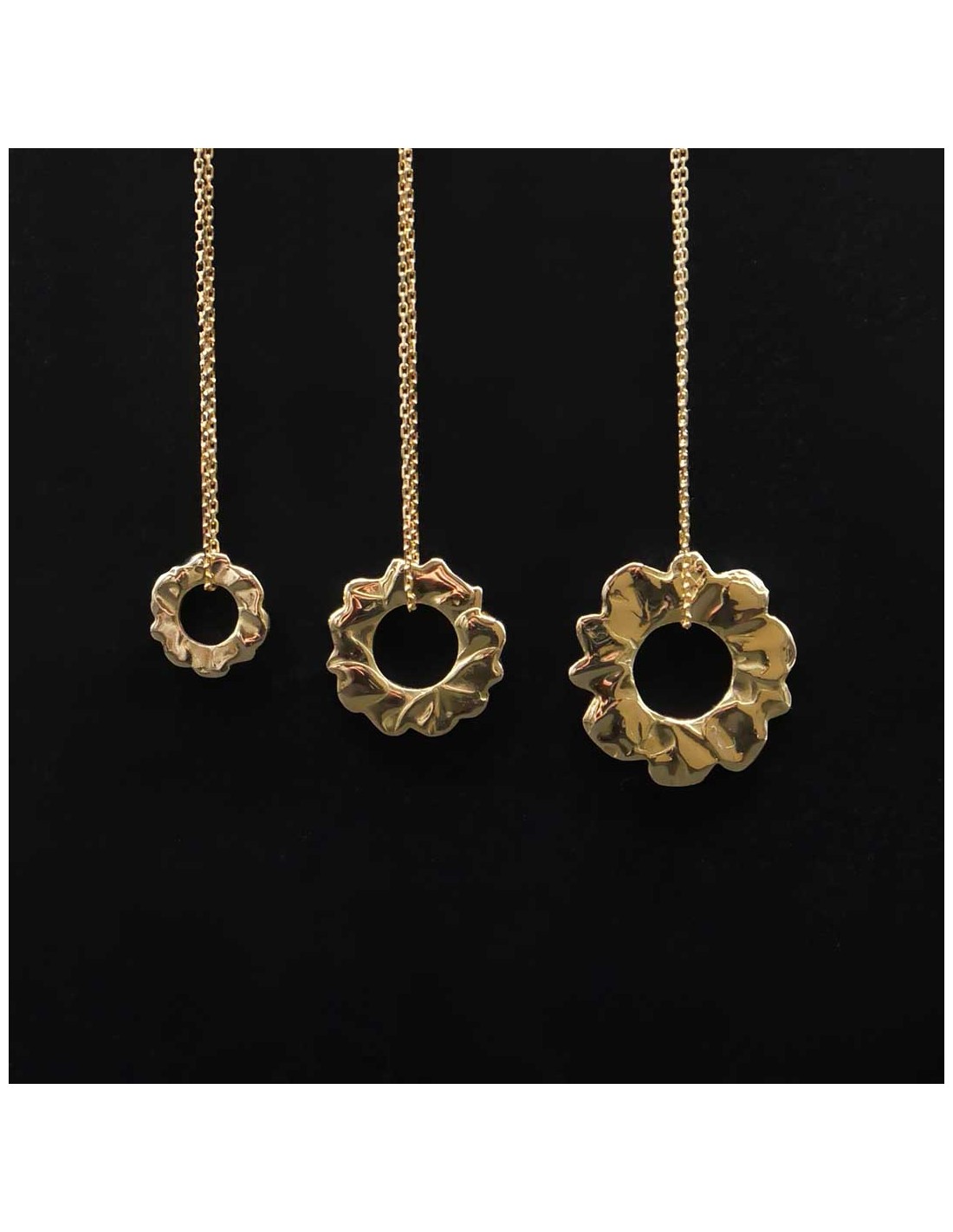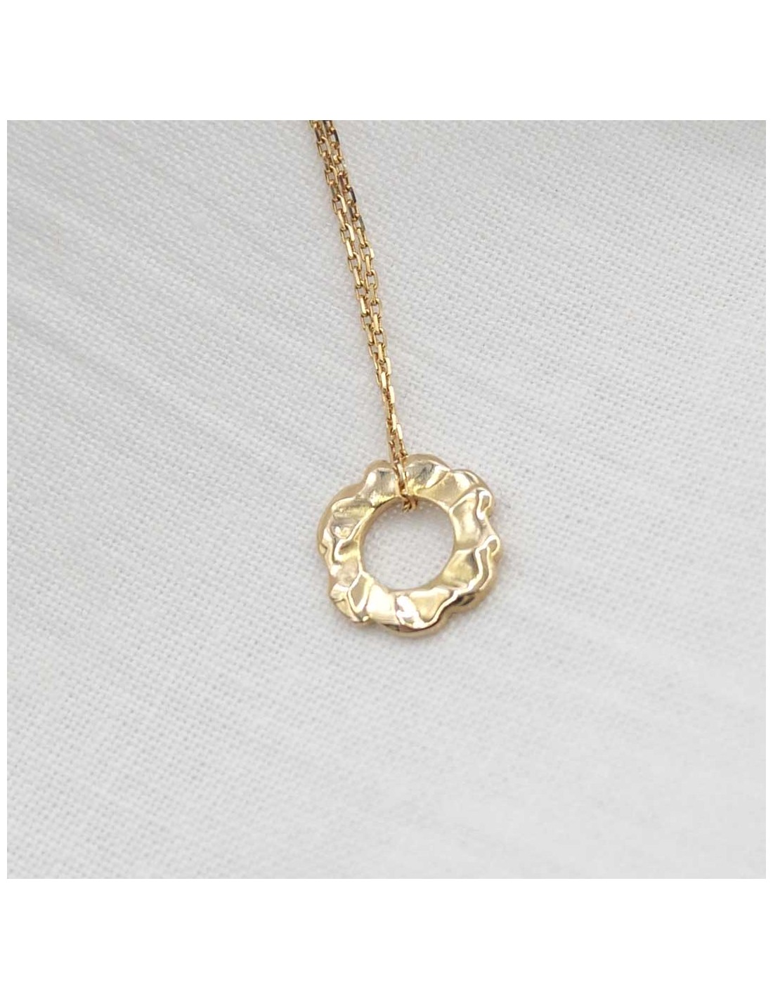 Pendentif soleil or jaune 18 carats à la texture fondue et organique