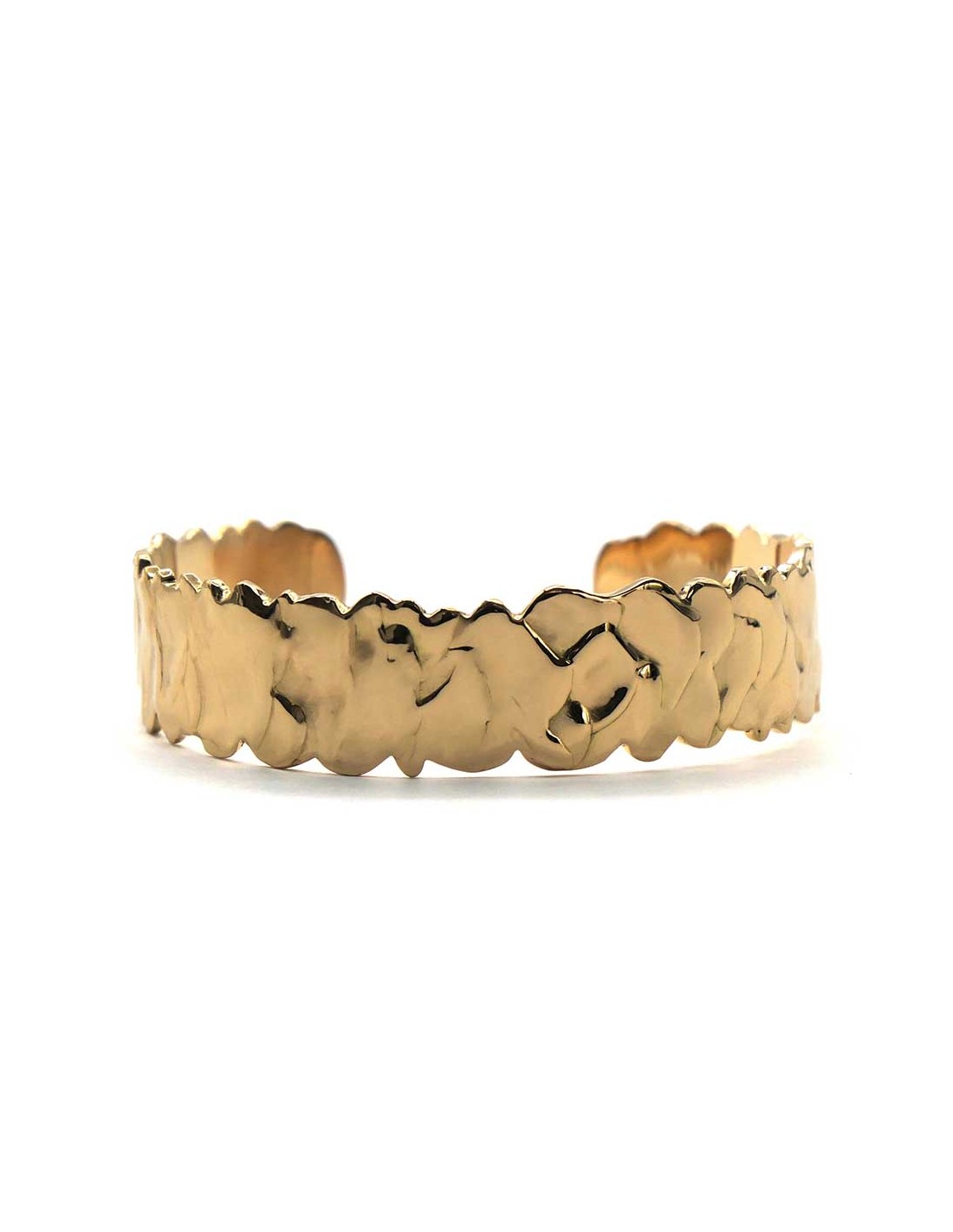 Bijou signature de la collection Hélios, cette manchette en or 18 carats incarne la puissance fluide de la matière en fusion. Sculptée à la main dans une texture fondue et organique, elle évoque une coulée de lave figée, entre force brute et éclat solaire.