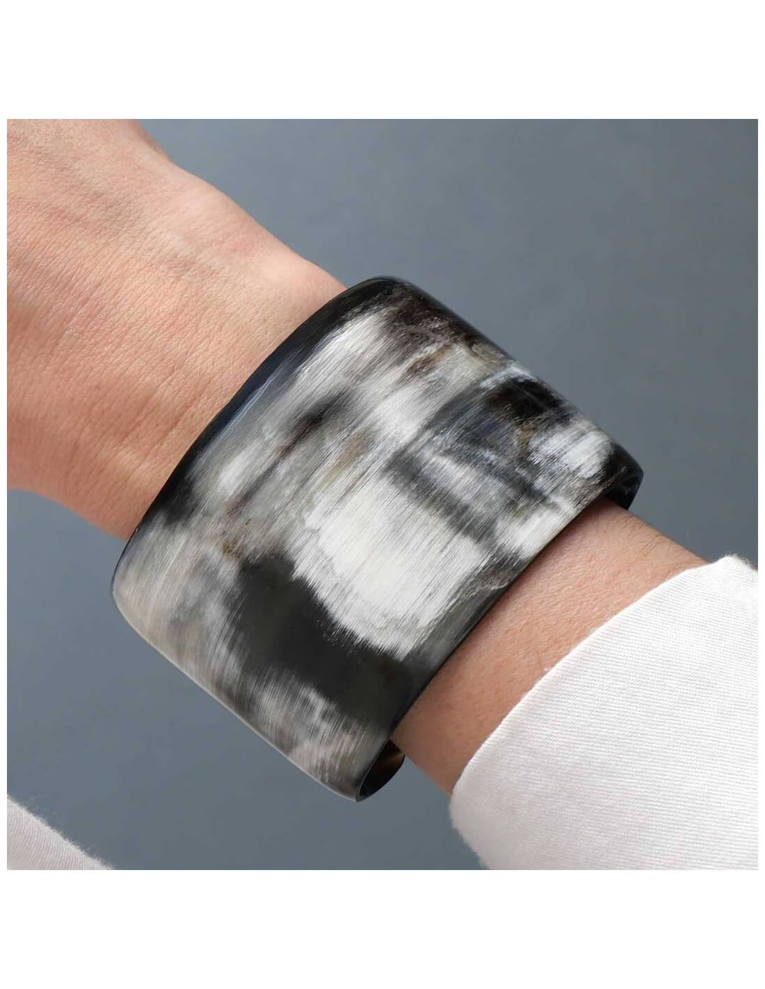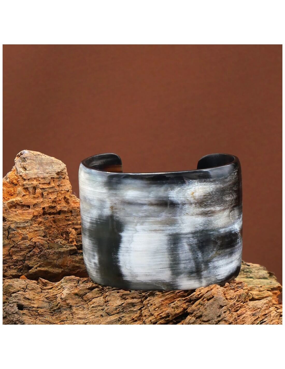 Cette manchette en corne est entièrement réalisée à la main en France.