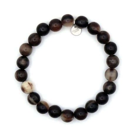 Ce bracelet perle Alvin est confectionné à la main avec un élastique résistant de haute qualité et des perles en corne de diamètre 10 mm.