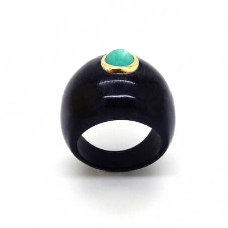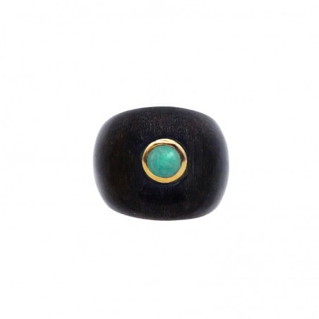Bague en corne foncée - pierre 6 mm serti plaqué or