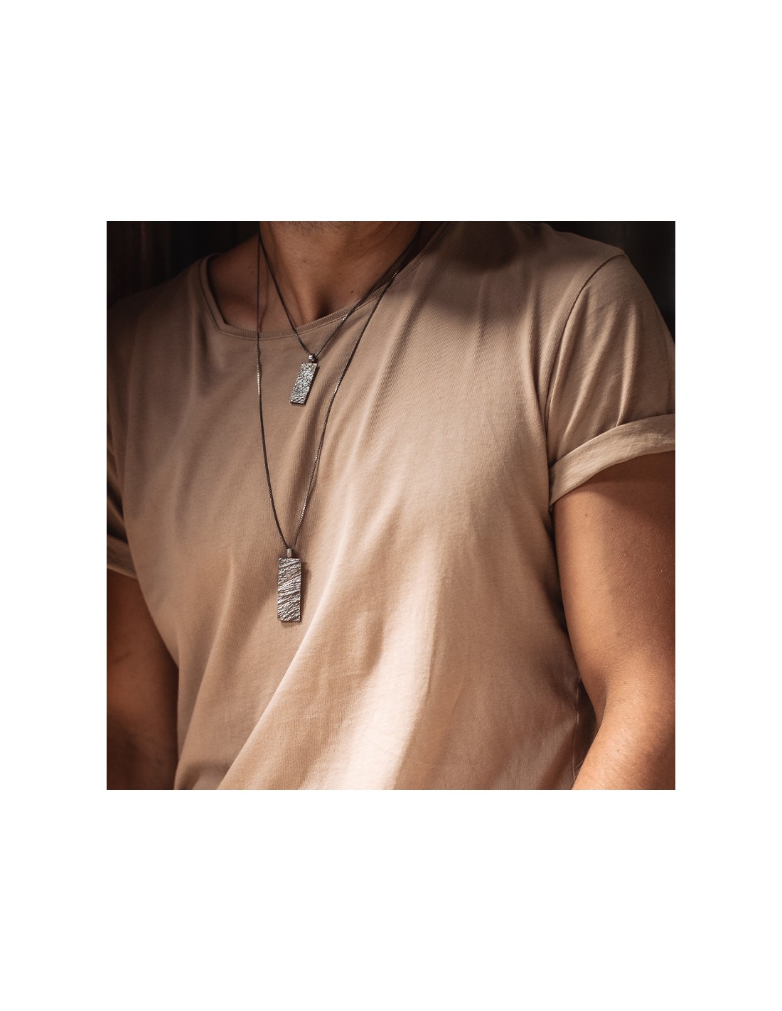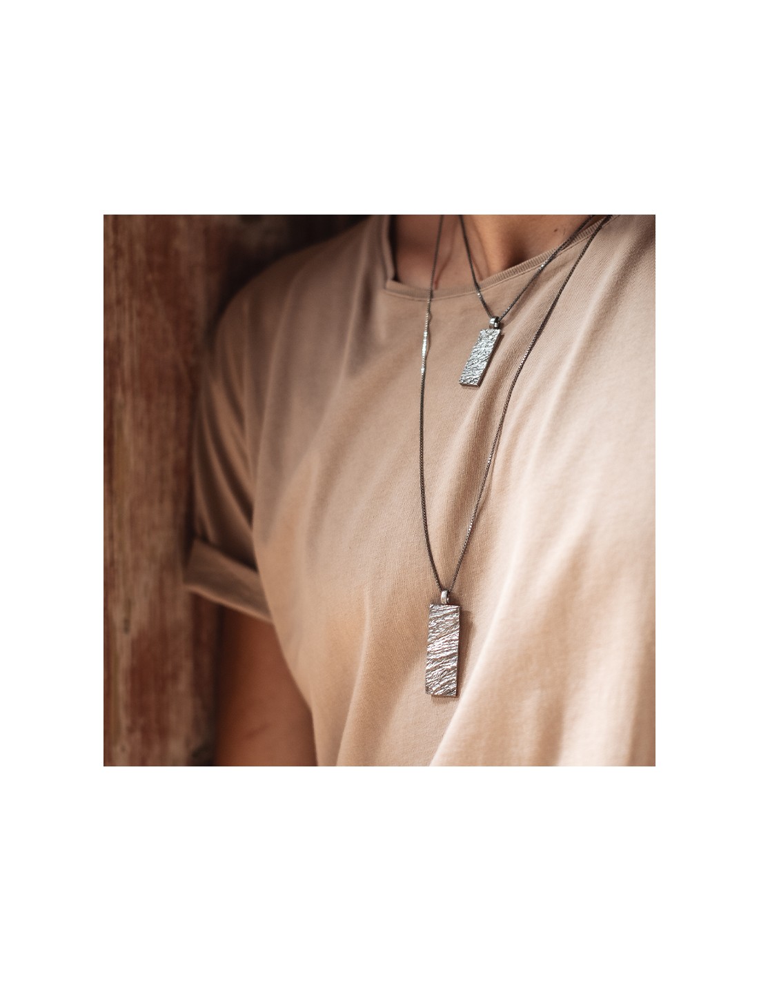 Ce collier se distingue par son aspect de matière évoquant le bois à l'état brut. L'écorce d'un chêne est retranscrite sur ce collier lui conférant un toucher exceptionnel et un sentiment de calme retrouvé.