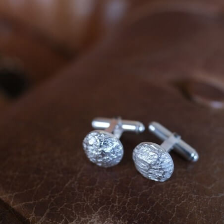 Ces boutons de manchettes sont travaillés avec un aspect de matière évoquant le bois à l'état brut. Idéal pour une cérémonie tel qu'un mariage.