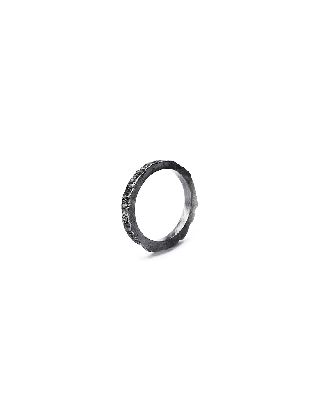 Photo sur fond blanc de l’alliance originale en argent modèle Hypérion finition vieillie  vue de trois quart.