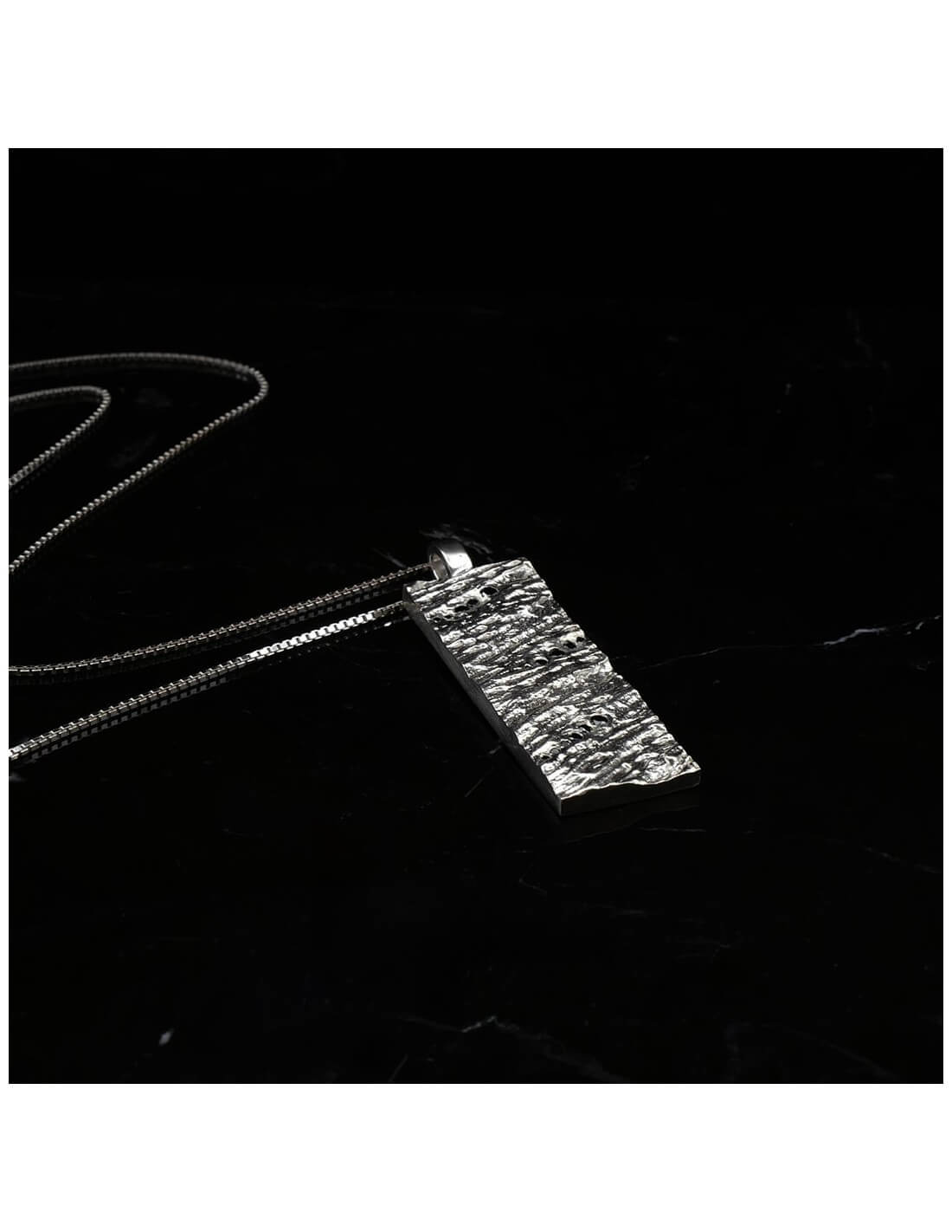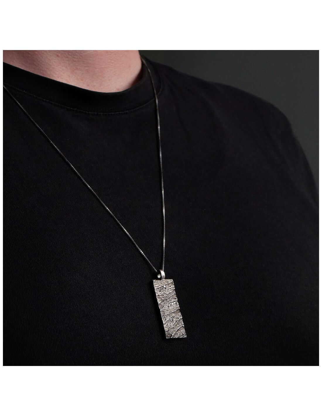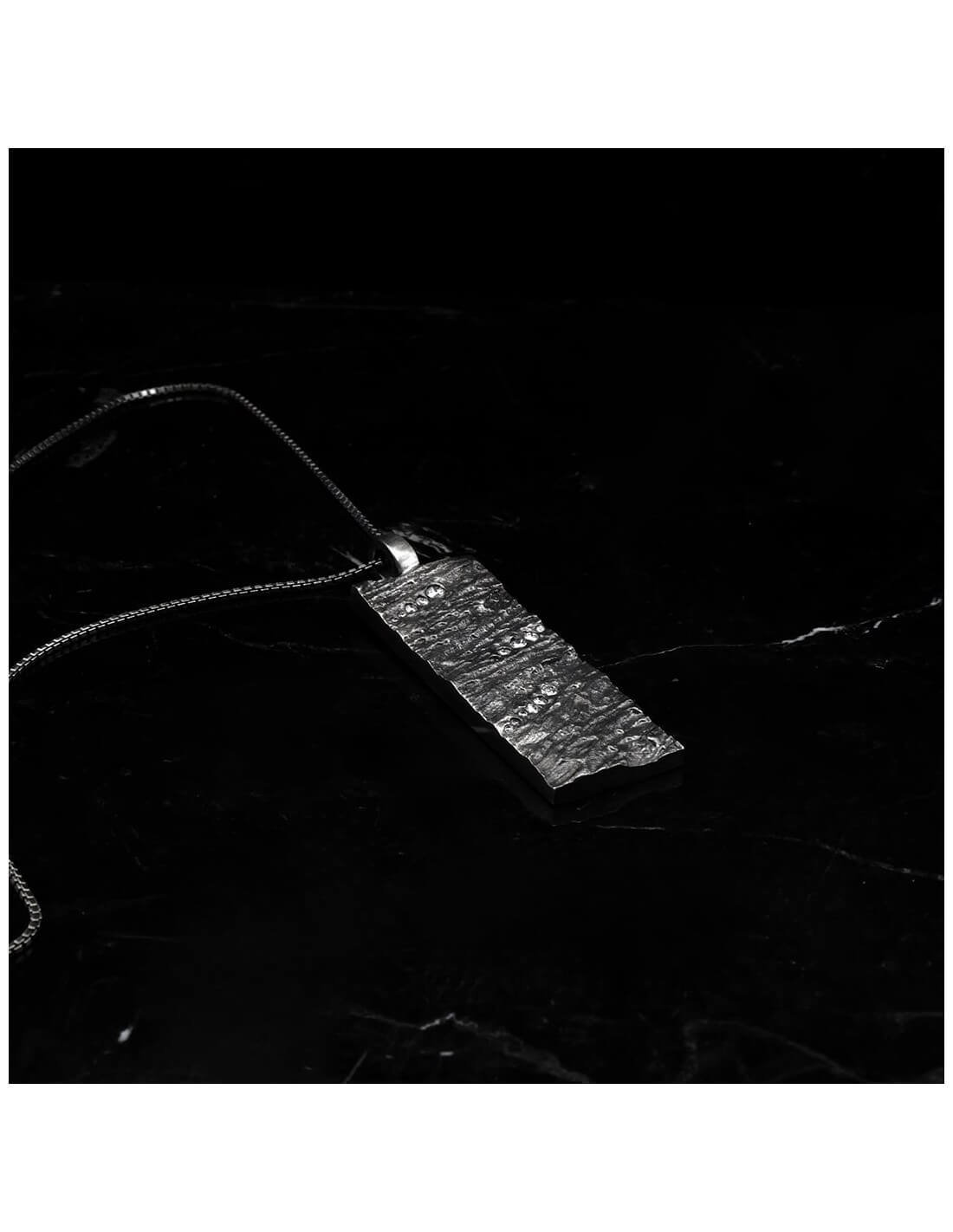 Inspiré de l’écorce d’un arbre millénaire, le collier diamant homme Hypérion L dévoile une texture organique puissante, façonnée à la main en argent massif. Chaque relief évoque la force silencieuse du bois, tandis que 16 diamants blancs apportent un éclat discret en dégradé.