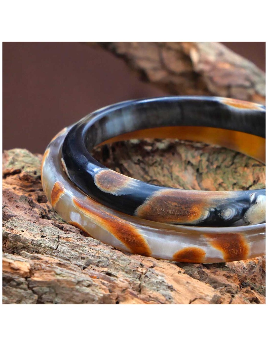 Photo portée jonc en corne tachetée 10 mm.