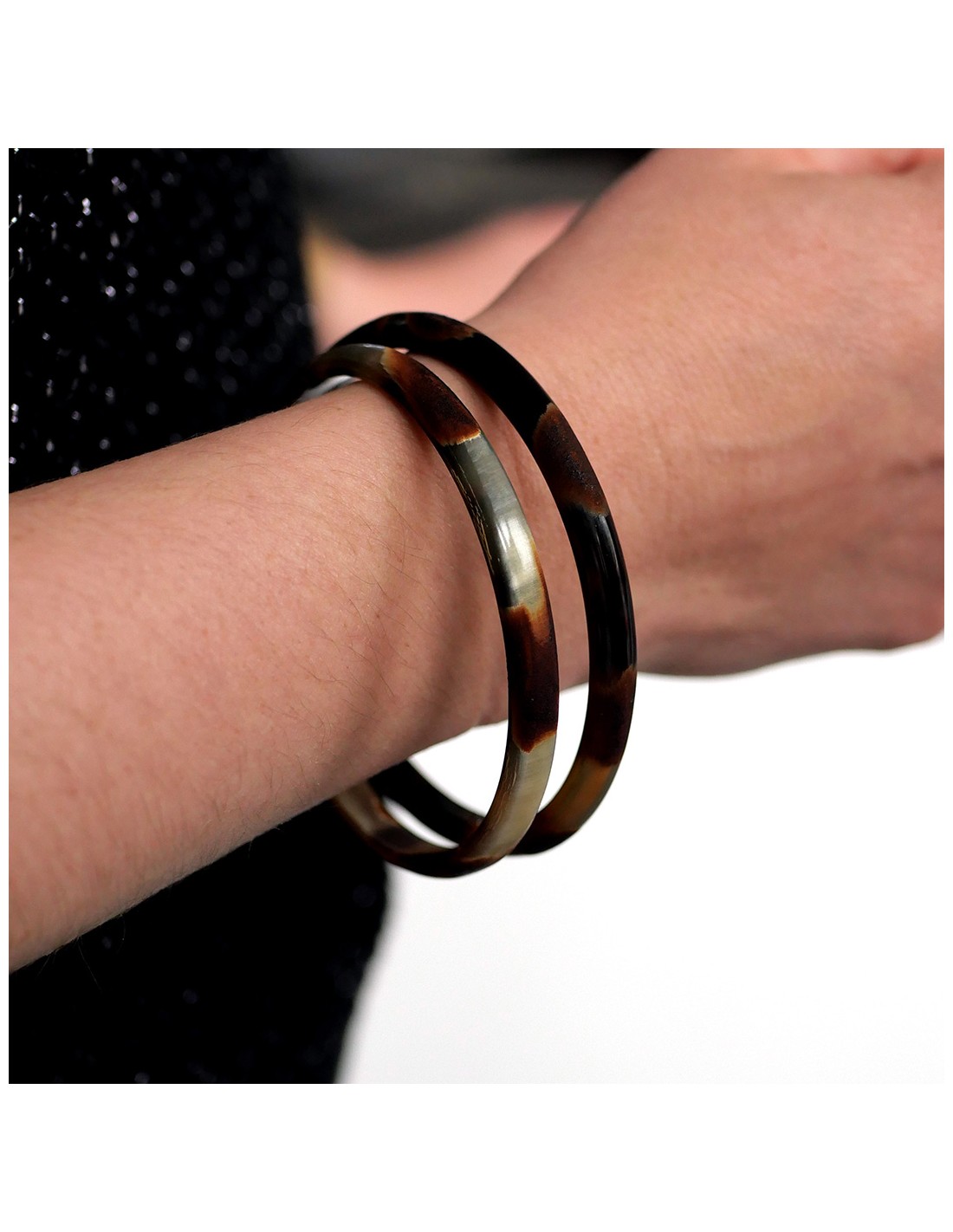Choisissez la couleur votre jonc en corne : La couleur claire est lumineuse en été comme en hiver, la couleur foncée est une valeur sûre qui se porte facilement. Ou mixez les couleurs !
