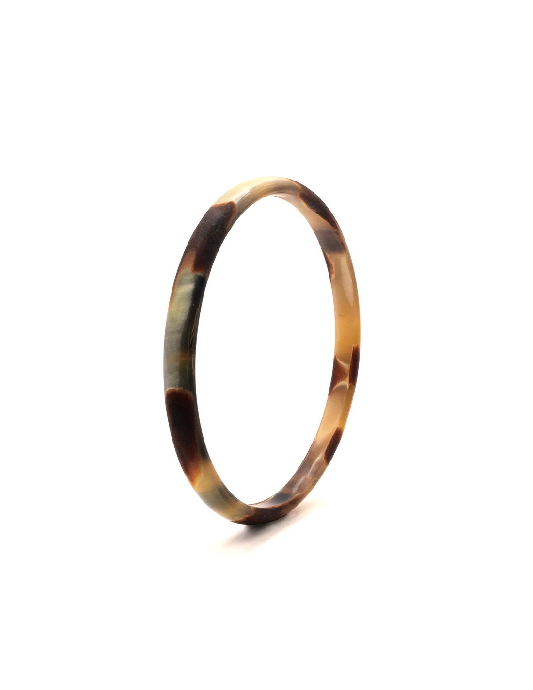 Photo sur fond blanc du jonc en corne claire 5 mm vue trois quarts de la collection terres inconnues.