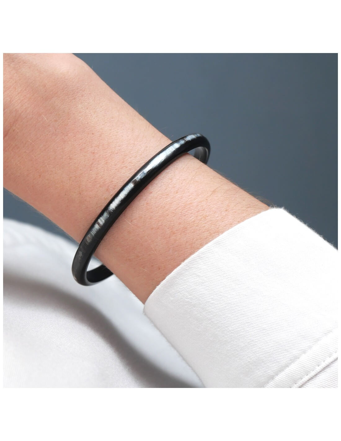 Parce que nous souhaitons que nos bijoux vous accompagnent toute votre vie, ces derniers sont fabriqués en corne véritable. Ce jonc est entièrement réalisée à la main en France.