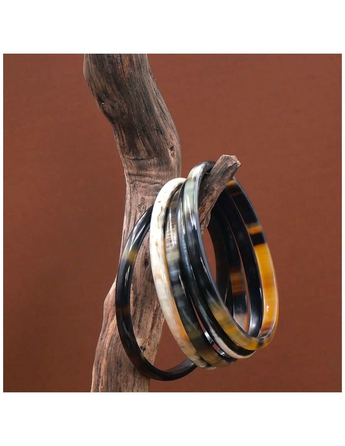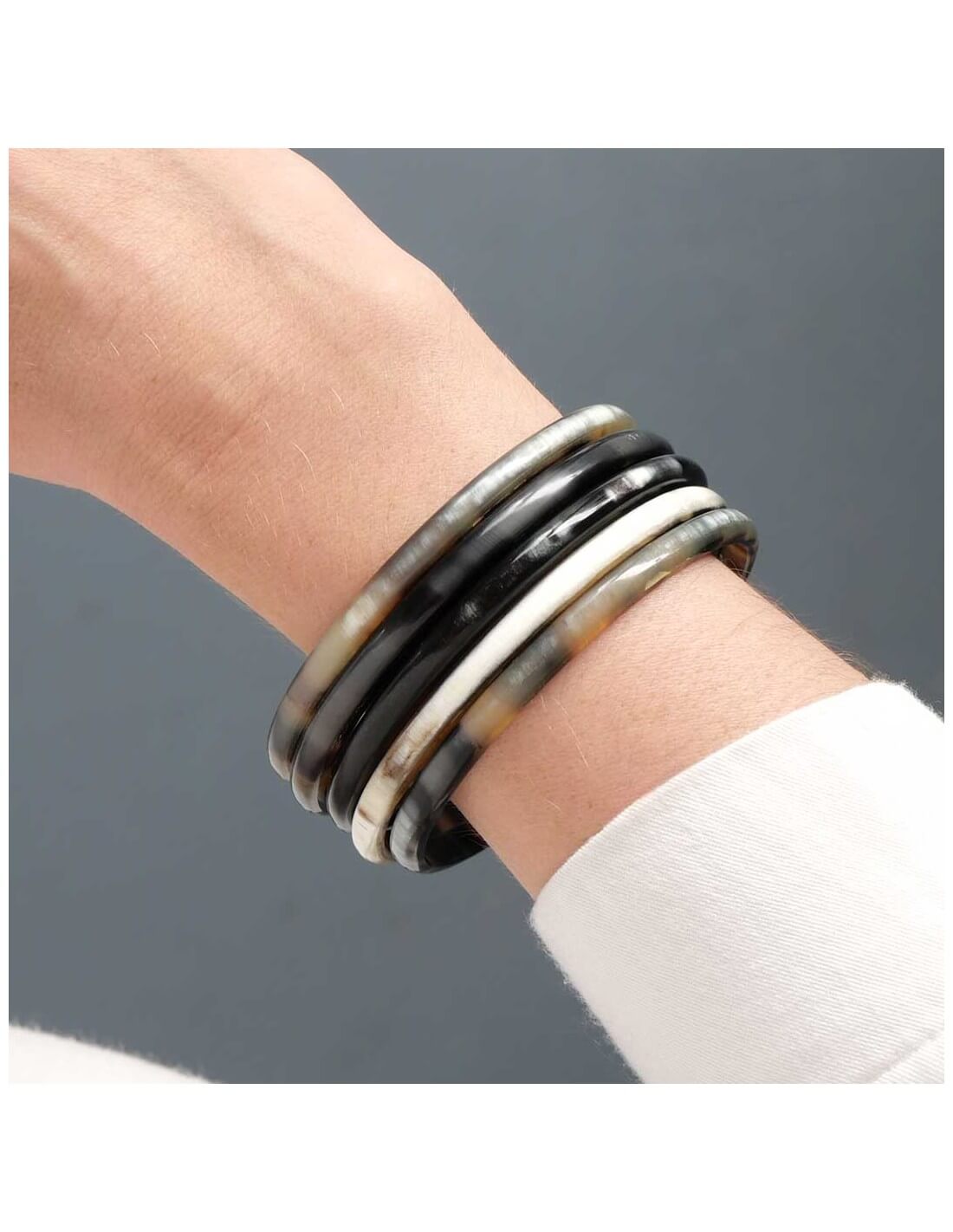 Choisissez la couleur votre jonc en corne : La couleur claire est lumineuse en été comme en hiver, la couleur foncée est une valeur sûre qui se porte facilement. Ou mixez les couleurs !