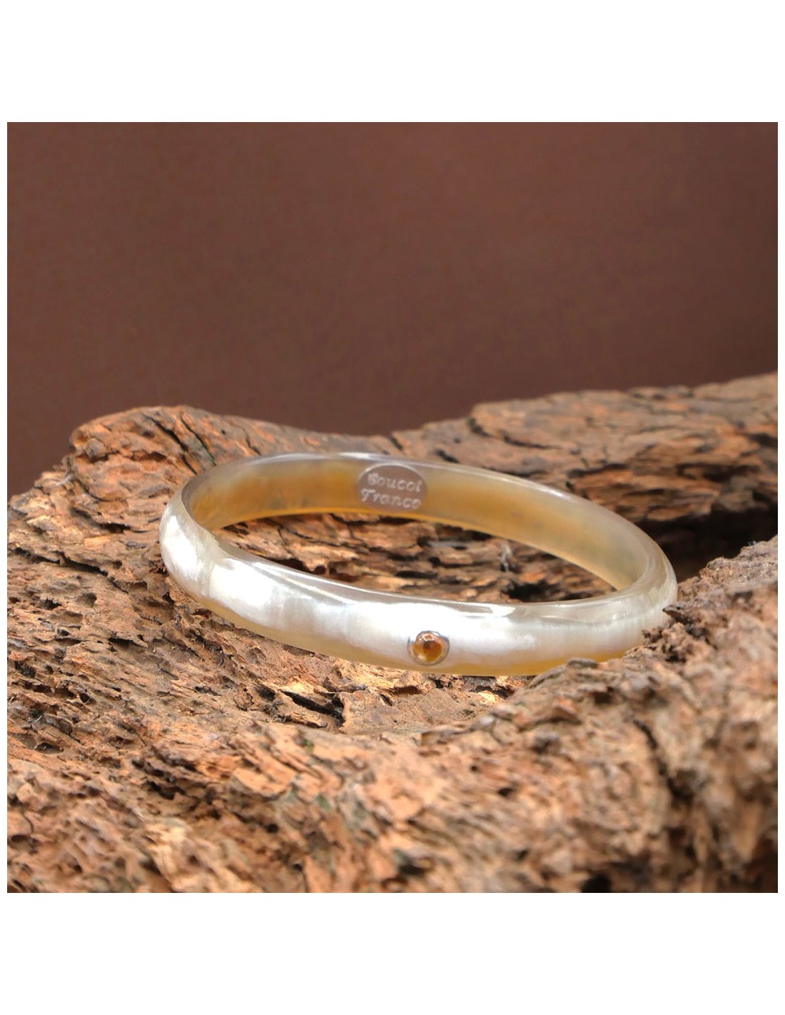 Jonc en corne claire 10mm serti argent - pierre 4 mm