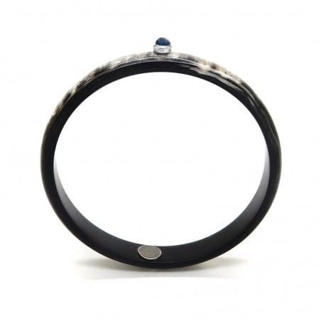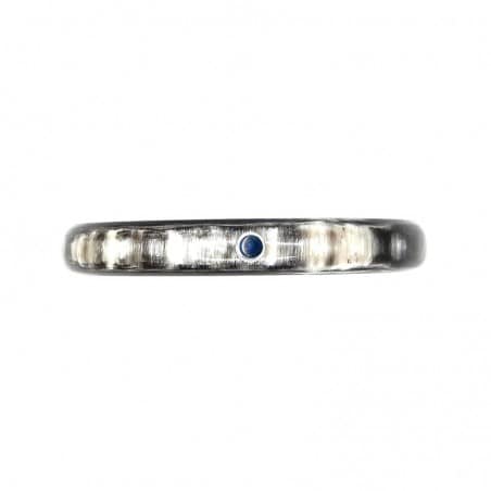 Jonc en corne foncée 10mm serti argent - pierre 4 mm
