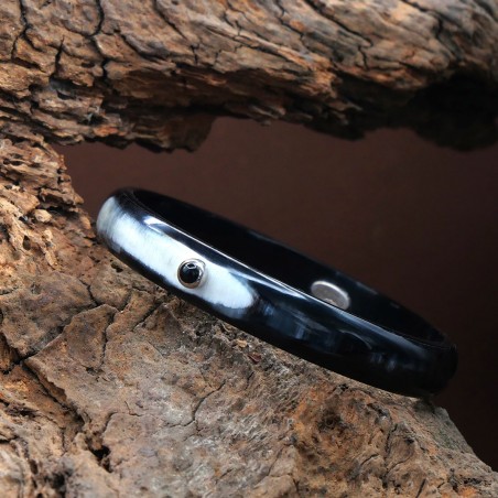 Parce que nous souhaitons que nos bijoux vous accompagnent toute votre vie, ces derniers sont fabriqués en corne véritable. Ce jonc est entièrement réalisé à la main en France.