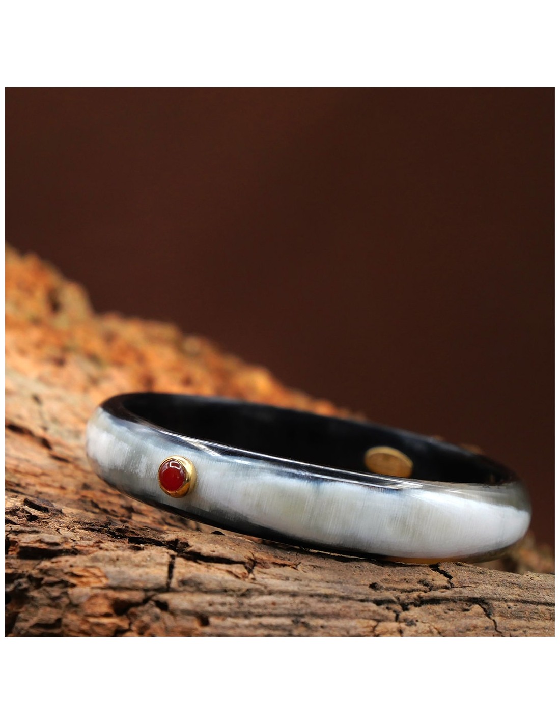 Parce que nous souhaitons que nos bijoux vous accompagnent toute votre vie, ces derniers sont fabriqués en corne véritable. Ce jonc est entièrement réalisé à la main en France.