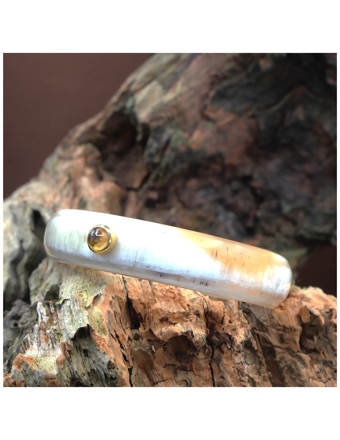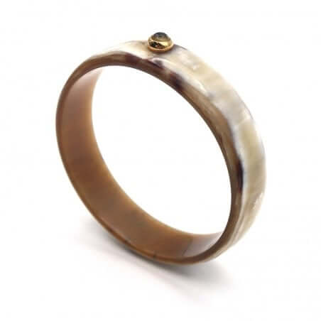 Jonc en corne claire 15mm serti plaqué or - pierre 6 mm