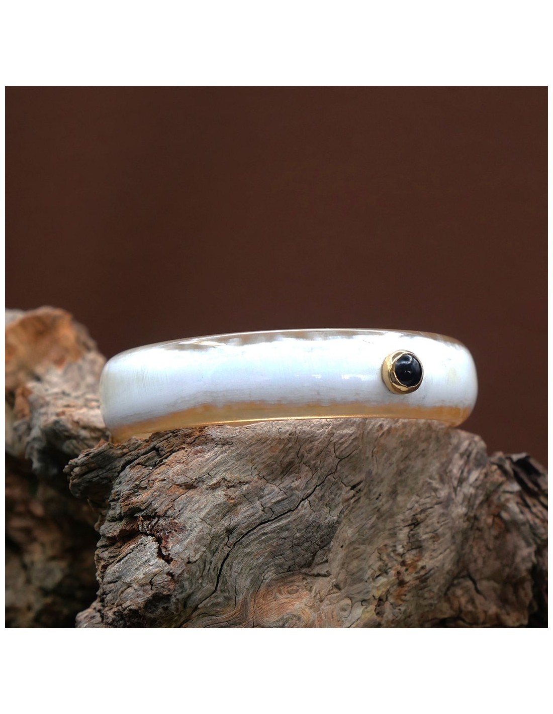 Jonc en corne claire 15mm serti plaqué or - pierre 6 mm