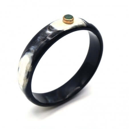 Jonc en corne foncée 15mm serti plaqué or - pierre 6 mm