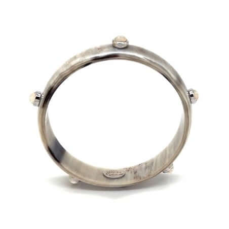 Jonc en corne claire 15mm serti argent - 5 pierres 6mm