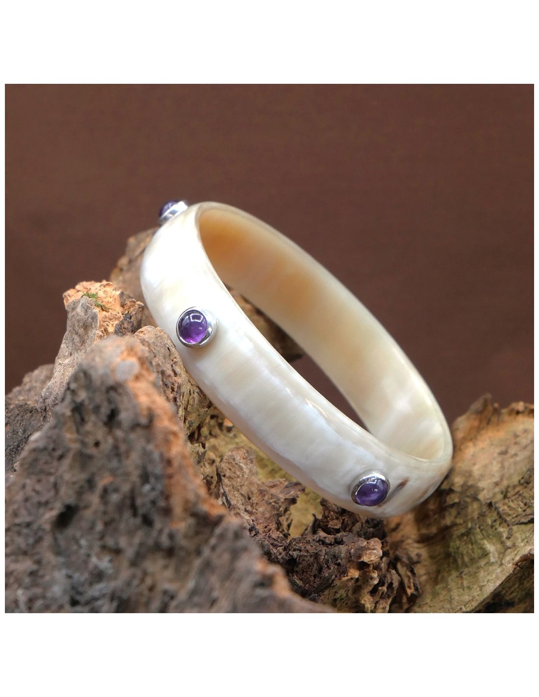 Ce jonc en corne illumine votre poignet grâce à ses 5 pierres de couleur.