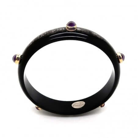 Jonc en corne foncée 15mm serti plaqué or - 5 pierres 6 mm