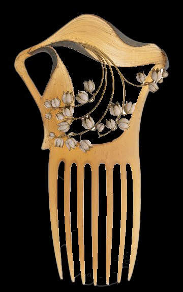 Peigne « Muguet », 1900, René Lalique (1860-1945) Corne blonde, or, émail opaque sur or -  Laurent-Sully Jaulmes