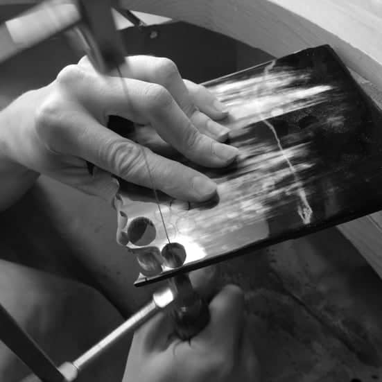 Selon la pièce qu’il a à façonner, l’artisan choisit la partie adaptée. Un travail de grattage est ensuite effectué afin d’éliminer les défauts visibles. Interviendront ensuite plusieurs étapes de fabrication pour un bijou ou un peigne en corne : le sciage, le limage, la taille, le perçage, le chauffage, le galbage, le ponçage et enfin le polissage.