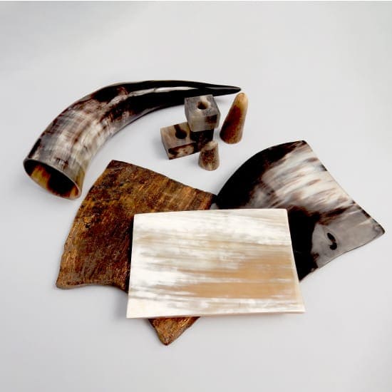 La corne est utilisée pour la fabrication d’objets, depuis des siècles. On en fait des manches de couteaux, des cuillères, des boutons et des accessoires tels que des barrettes, des peignes et des chausse-pieds.