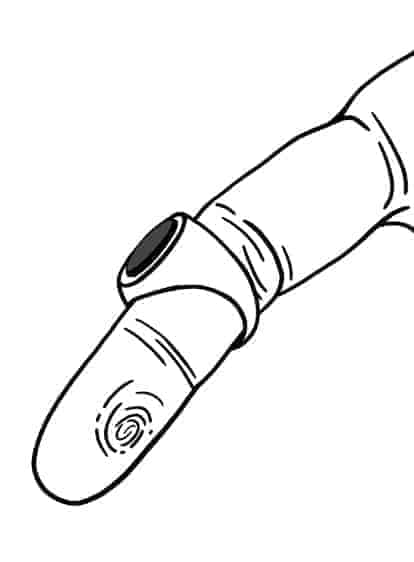 Prenez la mesure en plaçant votre pouce à la base de votre auriculaire (en rouge sur l'illustration).